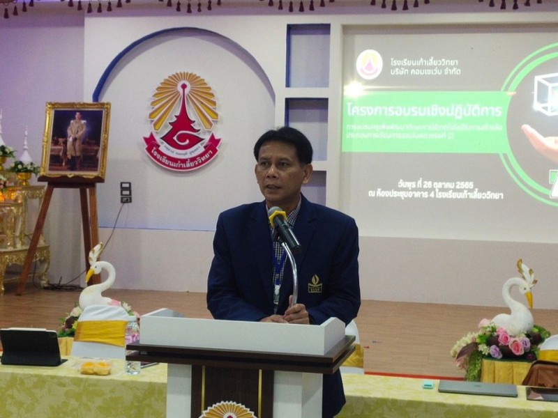 วันที่ 26 ตุลาคม 2565 เวลา 9:00 น. นายก้านตอง เส็งเอี่ยม ผู้อำนวยการโรงเรียน คณะครูโรงเรียนเก้าเลี้ยววิทยา เข้าร่วมโครงการอบรมเชิงปฏิบัติการ การอบรมครูเพื่อพัฒนาทักษะการใช้เทคโนโลยีในการสร้างสื่อประกอบการเรียนการสอนศตวรรษที่ ๒๑ จากบริษัทคอมเซเว่น จำกัด ณ